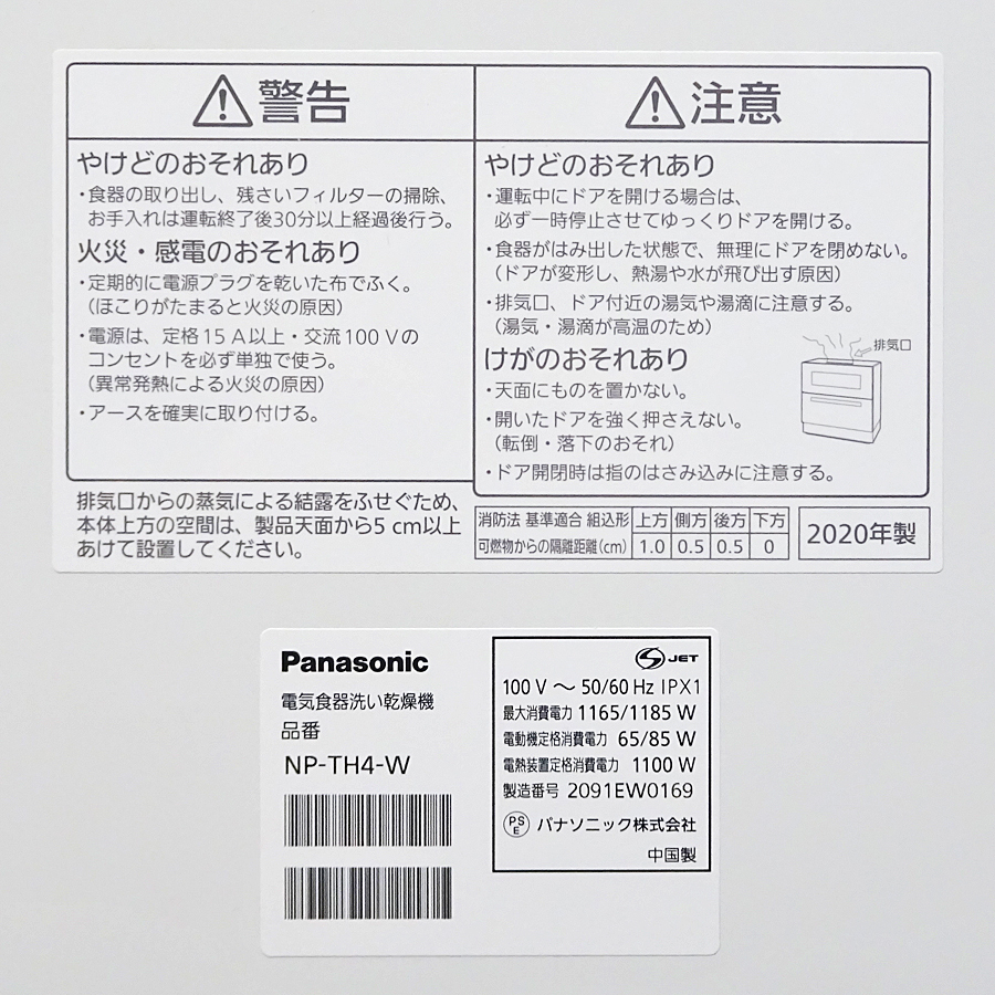 Pansonic【NP-TH4-W】パナソニック エコナビ ストリーム除菌洗浄 食器洗い乾燥機 2020年製 中古品