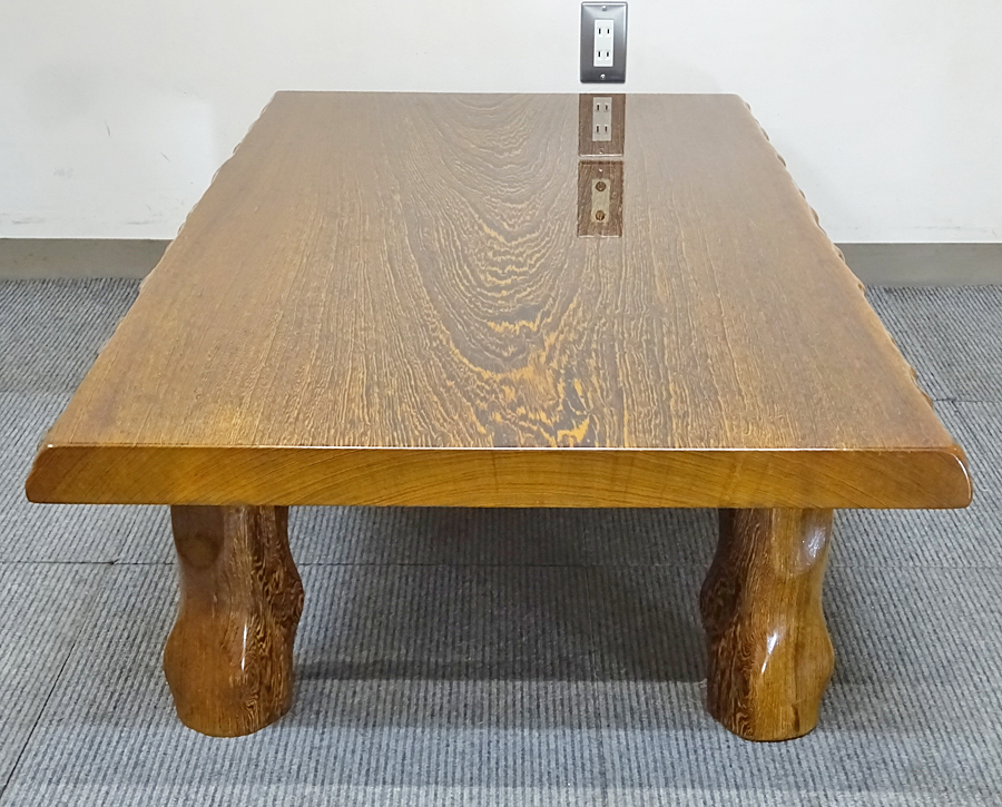 この度は数ある家具買取店から、エイブイをお選びいただきありがとうございます。 東京都中野区にお住まいのお客様より、ご不要となったテーブルの出張買取をさせていただきました。今回買取させていただいたのは、唐木三大銘木のひとつに数えられる、鉄刀木(タガヤサン)で作られた座卓です。 鉄刀木(タガヤサン)は東南アジアが原産のマメ科ジャケツイバラ亜科の広葉樹です。 非常に重たく硬い木で、「鉄の刀のよう」ということから、別名「鉄刀木」とも呼ばれています。 その重硬で緻密な材質から、紫檀・黒檀と並び唐木三大銘木と呼ばれ、古くから銘木として珍重されています。 天板には贅沢にも一枚板が使用されており、鉄刀木の木味を存分にお楽しみいただけます。 デザインは、実にシンプルでありながら、黒色のダイナミックで迫力ある木目と、ごつごつとした力強い質感は存在感抜群で、あるだけで高級感のある豊かな空間を演出してくれます。 和室だけでなく洋間でもなごみの空間を演出し、現代のお部屋にも溶け込む素敵なテーブルです。 これからもお客様に喜んでいただけるサービスを提供してまいりますので、今後ともどうぞよろしくお願い申し上げます。 誠にありがとうございました。