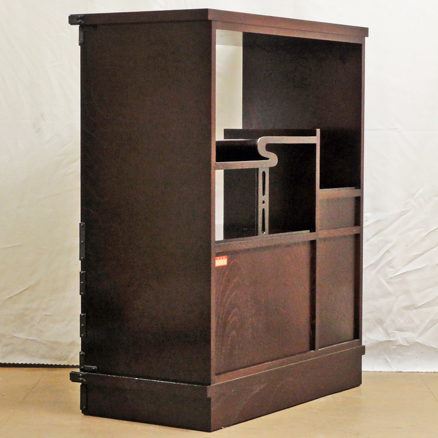 遠野民芸家具 飾棚 飾り棚 違い棚 欅玉杢 欅材 桐材 南部鉄器金具 向い鶴柄飾り金具 漆塗り 工芸品 和家具